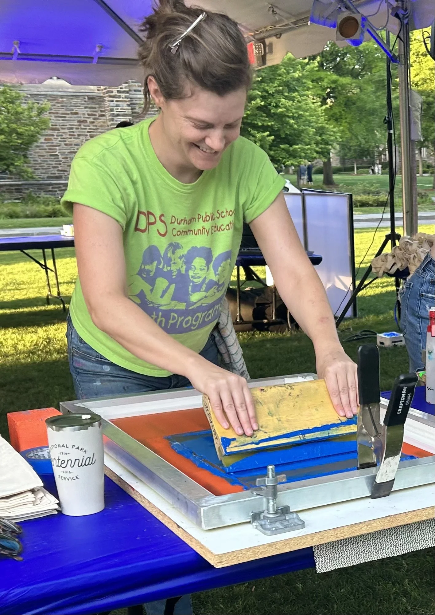 Georgia Paige Welch is a Durham, North Carolina–based printmaker, installation artist, and painter. She creates large-scale, immersive installations that use repetition, language, and color to explore themes of constriction, possibility, and paradox. Her work has been exhibited across North Carolina, including at the Rubenstein Arts Center at Duke University, Artspace Raleigh, the Durham Arts Council, and East Carolina University. Her work can be purchased at PEEL Gallery Carrboro. She has a forthcoming solo exhibition at Green Hill Gallery in Greensboro, June 27-August